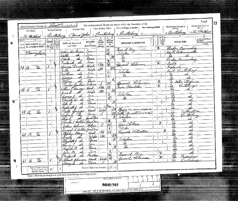 UKCensus 1891 Canterbury, Kent, England RG12/707/29/5 (Stephen May)